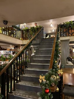 В меню ресторана Джонджоли блюда грузинской и русской кухни. Сначала подают ассорти кавказских сыров, пряные пхали и хумус с гренками из лаваша. На первое готовят лагман из баранины, харчо, грузинский чечевичный суп. На горячее – шашлык из каре ягненка, ребрышки по-абхазски, форель на мангале и запеченные баклажаны с сулугуни. К чаю подают восточную пахлаву, меренговый рулет с фисташкой и торт Наполеон.